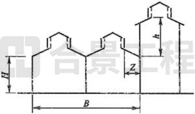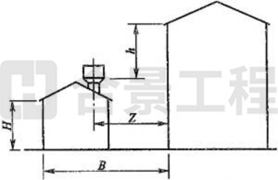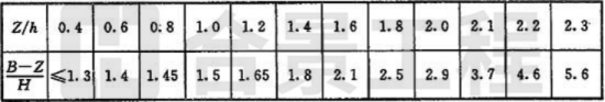 注:當(dāng)Z/h>2.3時,建筑物的相關(guān)尺寸可不受限制。